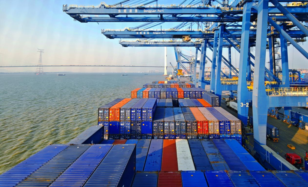 在东莞港集装箱码头,“新明州72”轮正在装货,码头岸桥四路齐开,集装箱在船舱层层堆叠,船舶吃水一点点加深。“在确保安全的前提下,我们要实现“多装快跑”,不断提升船舶整体生产效率。”“新明州72”轮大副盯着本航次船舶配载图介绍道。