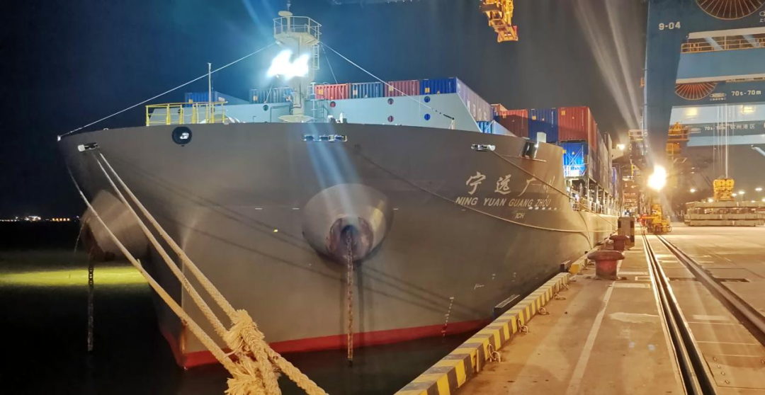 深夜0时许,广西钦州港依旧灯火通明,公司最大吨位集装箱船之一——“宁远广州”轮即将完成装货作业,满载起航。根据航行计划,该船将经过4天航行、跨越1000余海里,将5万余吨白糖、金属、石灰石等集装箱货物高效运抵宁波舟山港北仑港区,彰显主力船舶的运力担当与作业韧性。