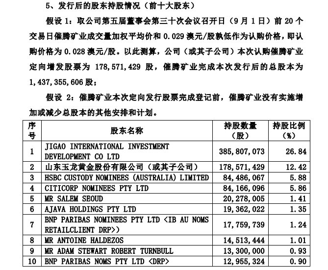 催腾矿业第一大股东则是济南高新控股集团有限公司(以下简称“济高控股”)的全资子公司。2021年10月,玉龙股份原控股股东海南厚皑科技有限公司向济高控股协议转让上市公司股权完成过户登记手续,因此,济高控股成为玉龙股份的控股股东,此次交易也构成了关联交易。