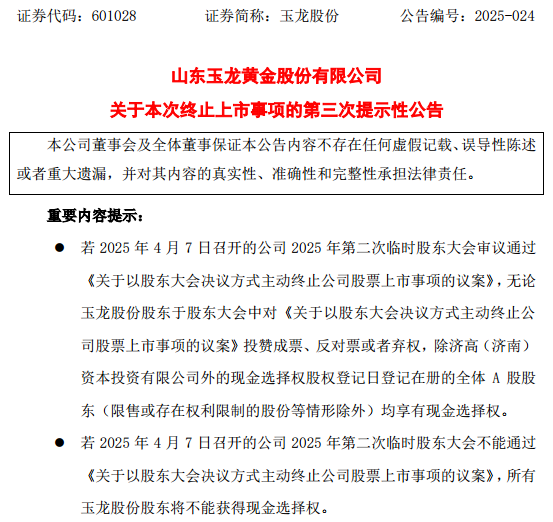根据公告,玉龙股份自3月27日起停牌,并计划于4月7日召开2025年第二次临时股东大会,审议终止上市事项。截至停牌前一日,玉龙股份股价报12.83元/股,总市值达100.5亿元,股东人数达3.805万户。