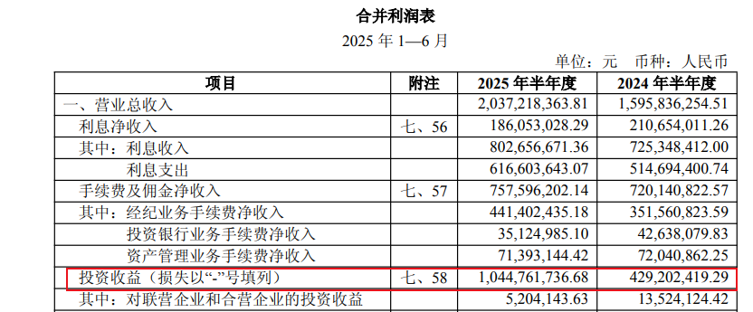 在营收构成上,上半年,投资收益成为信达证券的重要收入来源,达10.45亿元,较去年同期增长超过一倍,达143.59%,占营收比重为51.3%。2023年、2024年,该收入保持稳定增长,分别为9.65亿元、10.43亿元,同比增幅分别为32.92%、8.08%,占营收比重分别为27.7%、31.68%。