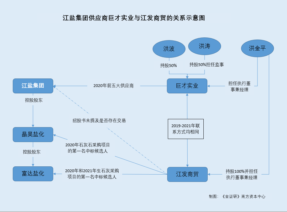 需要指出的是,招股书披露,巨才实业是江盐集团2020年的前五供应商,但从未提及“江发商贸”。