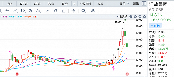 比如江盐集团(601065.SH)一度走出三连板。其他如苏盐井神(603299.SH)、雪天盐业(600929.SH)、中盐化工(600328.SH)等一些同板块标的,也都有各自的表现。