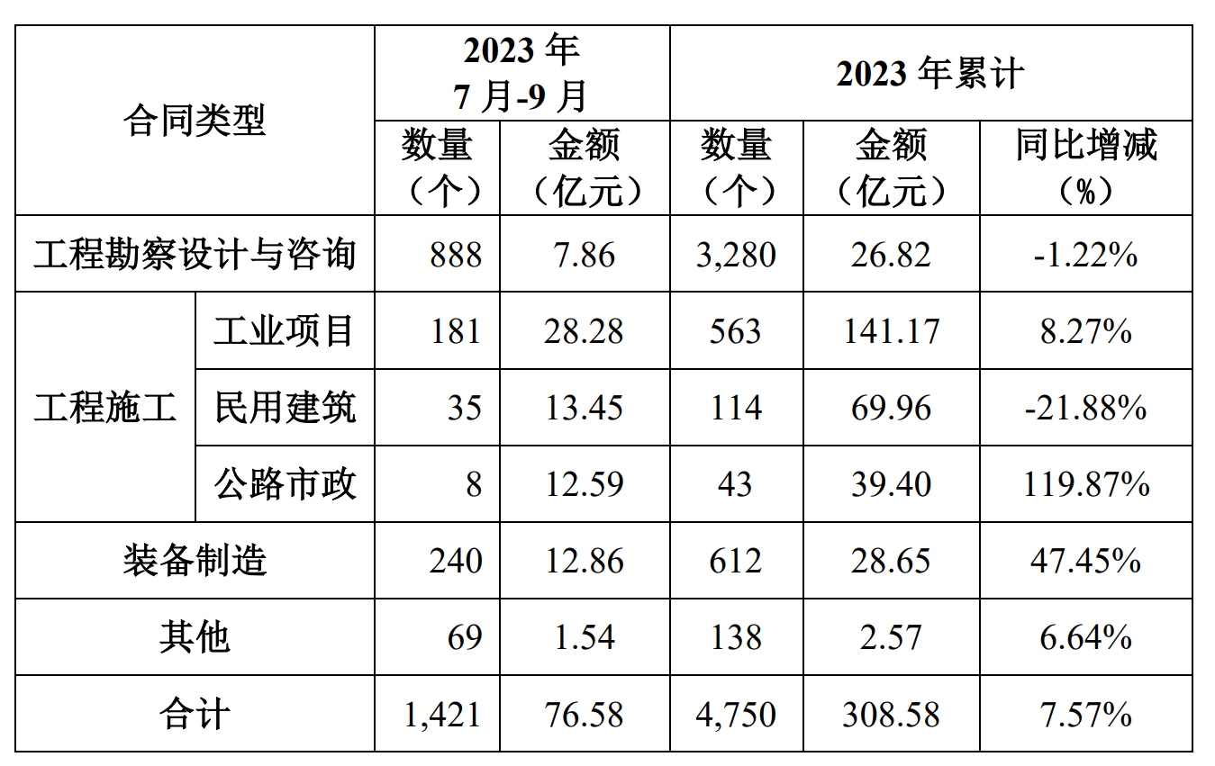 公告显示,2023年第三季度,中铝国际新签合同1,421个,新签合同金额为人民币76.58亿元。