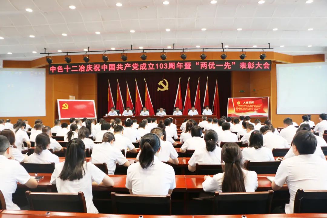 十二冶召开庆祝中国共产党成立103周年大会暨“两优一先”表彰大会,回顾党的光辉历程,缅怀革命先辈的丰功伟绩,表彰优秀共产党员、优秀党务工作者、先进基层党组织和2023年“两带两创”优秀项目,激励全体党员干部迎难而上、团结奋斗。