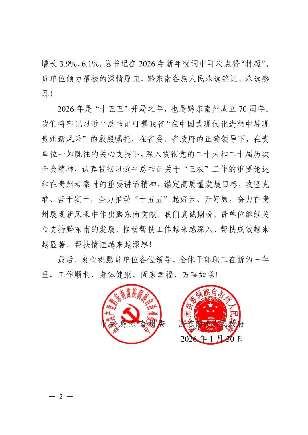 2026年是“十五五”开局之年,亦是黔东南州成立70周年。贵阳院将持续牢记央企使命,深入贯彻党的二十大及二十届历次全会精神,聚焦产业升级、防返贫监测、乡村治理等重点任务,持续深化帮扶协作,为黔东南在中国式现代化进程中展现新风采贡献央企力量。