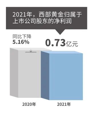 4月7日,西部黄金股份有限公司发布2021年年报。去年,西部黄金生产标准金10.63吨(不包括金精矿折算金属量),完成年计划的101.14%,同比减少3.39吨。实现营业收入41.58亿元,同比下降25.15%。归属于上市公司股东的净利润0.73亿元,同比下降5.16%。