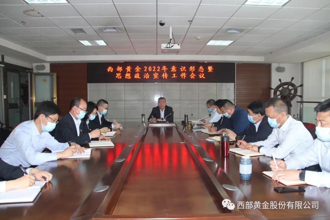 4月14日,西部黄金以主会场+视频分会场形式召开2022年意识形态暨思想政治宣传工作会议,学习贯彻习近平总书记关于宣传思想工作的重要指示精神,贯彻落实全国、自治区宣传部长会议精神,总结2021年意识形态和思想政治宣传工作,安排部署2022年重点任务。党委书记段卫东作讲话,党委副书记、纪委书记张丽主持会议。
