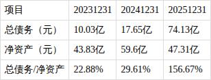 ?总债务/净资产比值持续上涨。近三期年报,总债务/净资产比值分别为22.88%、29.61%、156.67%,持续增长。