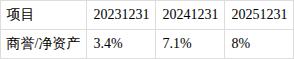 ?商誉/净资产比值持续增长。近三期年报,商誉/净资产比值分别为3.4%、7.1%、8%,呈持续增长趋势。