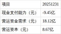 ?资金协调但有支付困难。报告期内,营运资本为8.7亿元,公司营运资金需求为18.1亿元,投融资活动带来的营运资金不能完全覆盖企业经营活动的资金的需求,公司现金支付能力为-9.4亿元。