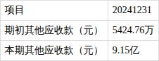 ?其他应收款变动较大。报告期内,其他应收款为9.1亿元,较期初变动率为1586.28%。