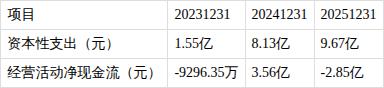 ?资本性支出持续高于经营活动净现金流入。近三期年报,购建固定资产、无形资产和其他长期资产支付的现金分别为1.5亿元、8.1亿元、9.7亿元,公司经营活动净现金流分别-0.9亿元、3.6亿元、-2.8亿元。