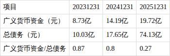 ?总债务现金覆盖率逐渐变小。近三期年报,广义货币资金/总债务比值分别为0.87、0.8、0.27,持续下降。