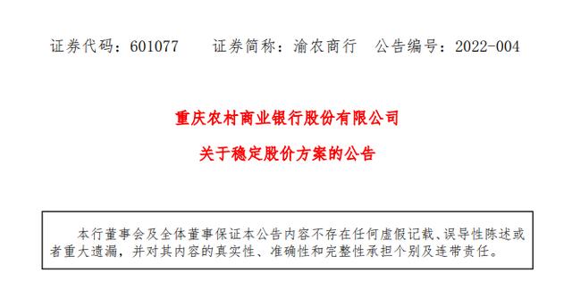 渝农商行发布了第四次稳定股价方案的公告。