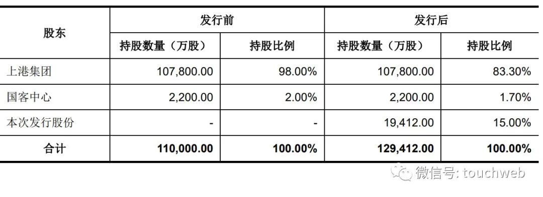 IPO后,上港集团持股为83.3%,国客中心持股为1.7%。