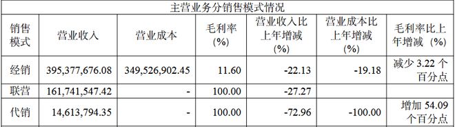 分销售模式来看,2024年国芳集团的经销、联营、代销模式所获收入均呈现下滑趋势,相比上年同期分别下降22.13%、27.27%、72.96%。