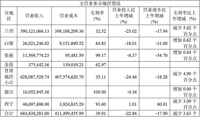 分地区来看,国芳集团虽然是西北地区的零售行业龙头,但其在甘肃主要地区,以及银川等地的营业收入也在下降。该公司在甘肃地区实现营收6.28亿元,同比下降24.46%;在银川实现营收1005.29万元,同比下降0.36%。