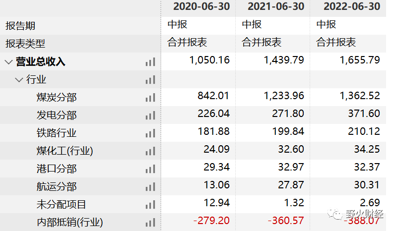 中报显示,中国神华(601088)2022年上半年实现收入约1656亿元,同比增长15%。公司收入主要来源于煤炭、发电、铁路以及化工等业务板块。