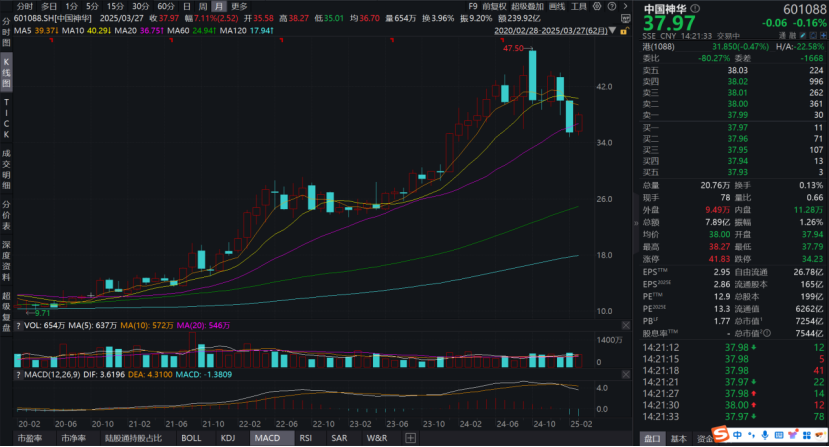数据反映出,作为可能是散户最重要的资产配置标的,银行理财在2023-2024年收益率下滑同时,低于3%在未来一段时间可能是常态。这就导致哪怕中国神华的股息率已经由11.28%跌至5.2%,对于长线投资的散户来说依然有吸引力。