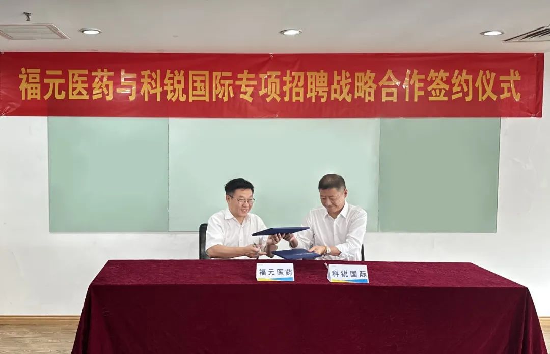 近日,北京福元医药股份有限公司与北京科锐国际人力资源股份有限公司正式签署战略推广二部专项招聘战略合作协议。签约仪式在北京举行,福元医药董事长黄河先生与科锐国际高级副总裁段立新先生就战略合作进行深入交流。会谈中,黄河先生深入分析医药行业发展前景,深刻剖析当前竞争格局,阐明专项招聘战略项目的重要意义及推动要求;段立新先生深刻解读福元医药本次招聘项目的战略布局与核心诉求,表示将带领科锐大健康板块团队全力做好本次战略性项目,为福元医药的高速发展与战略布局输送人才,助力公司实现高质量发展。