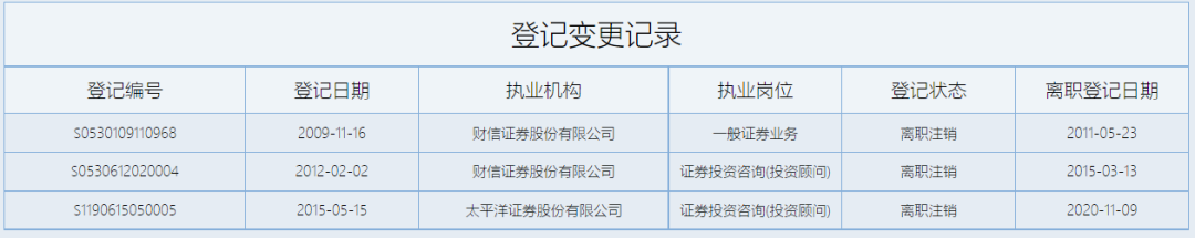 行家据此查看了中证协从业人员信息,当事人为博士学历。自2009年11月起任职于财信证券,2012年2月执业岗位变更为投资顾问。2015年,他登记入职太平洋证券。而据太平洋证券2015年年报披露,1,394名员工中仅有24名有博士学历。