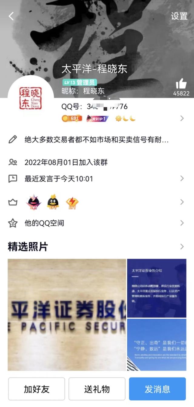 注:该平台冒充正规证券商太平洋证券,采用群带单、“荐股”的形式进行诱导当事人进行入金,并进行行骗,晨曦法务再次提醒不轻信高收益无风险(高收益必定高风险),不转多私人账户、多公司收款,不网上乱“交友”。