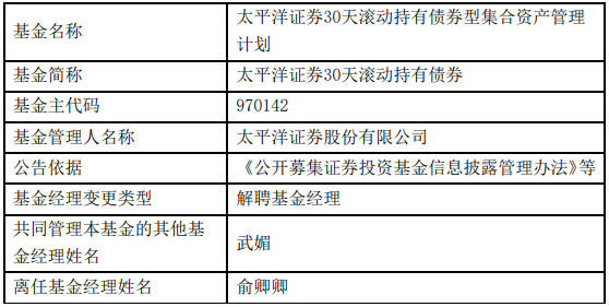 中国经济网北京9月7日讯今日,太平洋证券股份有限公司公告称,俞卿卿离任太平洋证券30天滚动持有债券、太平洋证券六个月滚动持有债券。