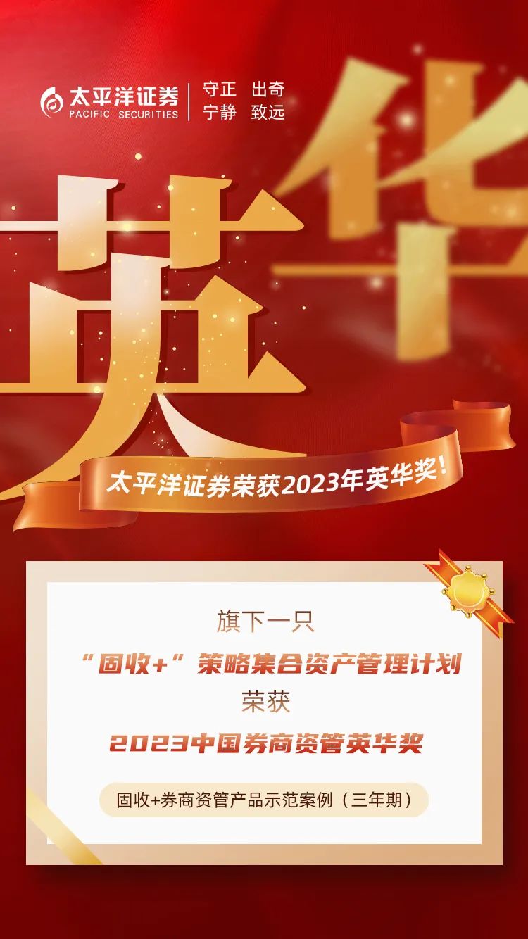 2023年9月6日,由《中国基金报》主办的“2023中国机构投资者论坛暨基金业25周年盛典”在北京顺利举办。“2023中国券商资管英华奖”评选结果在当天同步揭晓,太平洋证券荣获大奖: