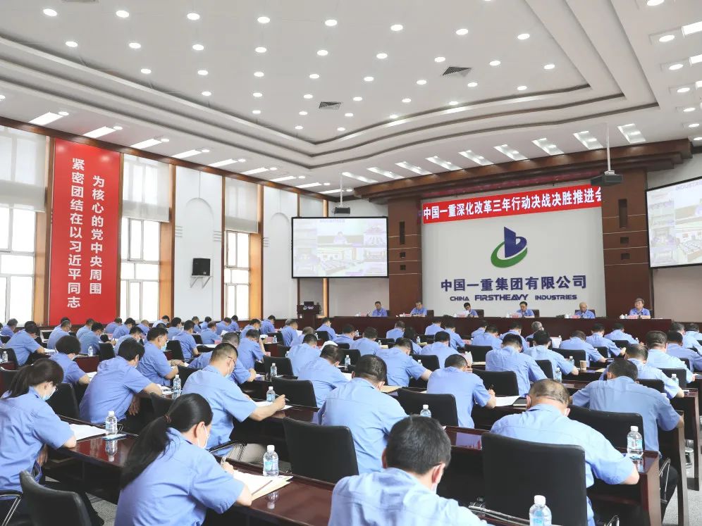 刘明忠指出,深化改革三年行动以来,集团公司采取务实管用举措,统筹协调推进深化改革三年行动,坚持“挂表督战”,突出全程跟踪全面覆盖;强化督查考核,紧扣结果导向提高改革实效;加大宣贯力度,着力凝聚深化改革广泛共识。通过两年多集中攻坚,重点领域和关键环节改革取得重要阶段性成效,现代企业制度不断健全完善,布局优化和结构调整取得突破,三项制度改革持续走深走实,科技创新体制机制改革破题,混合所有制改革积极稳妥推进,85项改革任务已完成83项,完成率达97.7%,剩余2项也已完成主体工作,中国一重深化改革三年行动进入收官阶段。