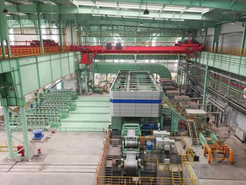在“高产、高效、节能、环保”的设计理念下,机组采用先进、高效的浅槽紊流酸洗工艺,配备新型转塔式圆盘剪,有效提升了产品质量和成材率;轧机段采用中国一重自主开发设计的新型VCMS六辊轧机,重型螺旋剪刃飞剪及转盘卷取机等设备,有效提高了机组的生产效率和自动化水平,进一步推动向“数字化、智能化”技术迈进。