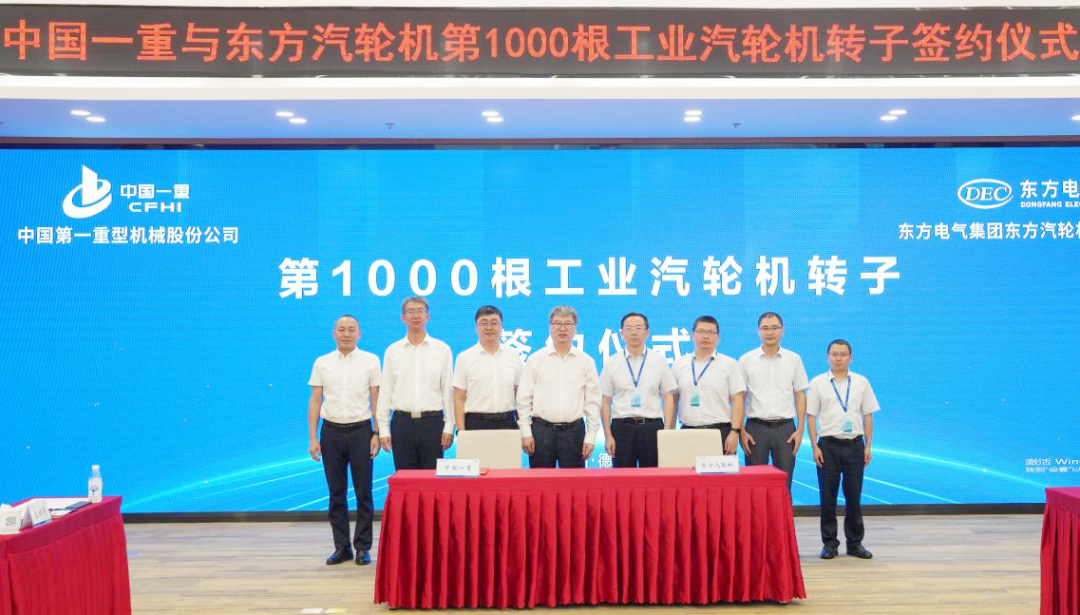 8月27日,中国一重与东方汽轮机有限公司举行第1000根工业汽轮机转子签约仪式。东方汽轮机有限公司党委书记、董事长刘辉主持签约仪式,集团公司党委常委、副总经理陆文俊出席签约仪式。