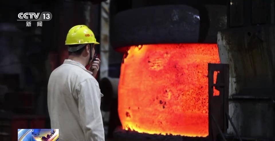 总台记者任秋宇:这里是中国一重的水压机锻造厂,很多大国重器的核心部件都是在这里被锻造出来的,一个接近500吨重的钢锭,刚刚被从加热炉里取出,现在被运往15000吨的水压机上,即将进行锻造。