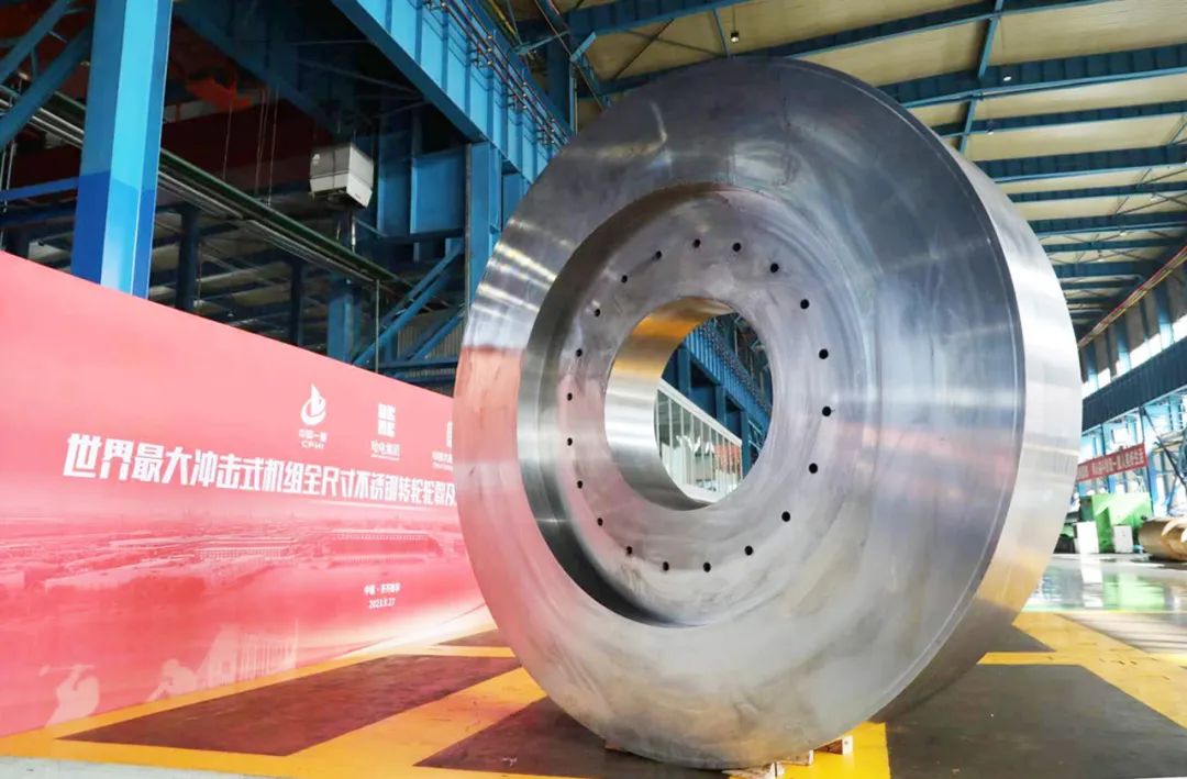 9月27日,中国一重和哈电集团电机公司共同研发的世界最大(500MW等级)冲击式机组全尺寸不锈钢转轮轮毂及水斗锻件完工仪式在中国一重举行。