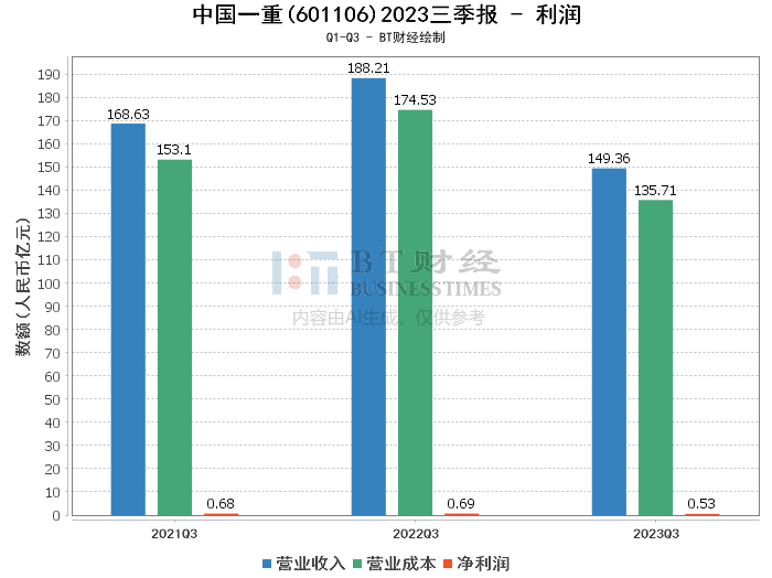 中国一重(股票代码:601106)作为国内重要的重型机械装备制造企业,在2023年三季报中展现了其在转型升级过程中的财务表现。公司服务于包括钢铁、有色、电力等多个行业,产品覆盖核岛设备、冶金设备等广泛领域。近年来,中国一重积极响应国家战略,转型高端装备制造,强化智能化、绿色化发展,不断提升竞争力。