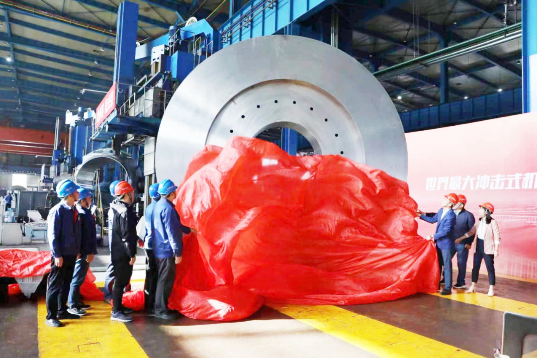 中国一重制造的3500KJ液压打桩锤下砧座和替打环是目前最大海上施工锻件产品,打破了海工装备核心材料制造领域技术壁垒,解决了长期以来海上风电施工打桩设备的瓶颈。在3500KJ液压打桩锤核心锻件取得成功的基础上,中国一重承接了江苏龙源振华海洋工程有限公司6000KJ+超大型液压打桩锤核心锻件的制造任务。6000KJ+超大型液压打桩锤是当今全球首创的打击能量最大、技术水平和科技含量最高的海上液压打桩设备,将有力强化我国海上风电施工领域的持续竞争力,夯实我国在该领域的领先地位,对我国海上风电未来高质量发展起到决定性作用。
