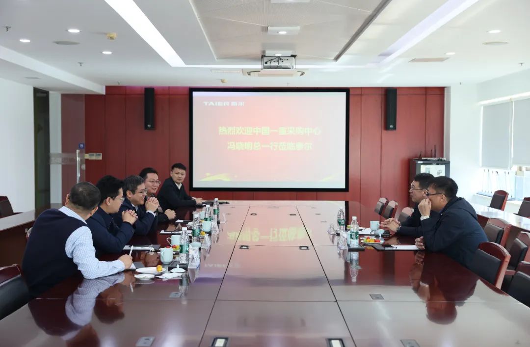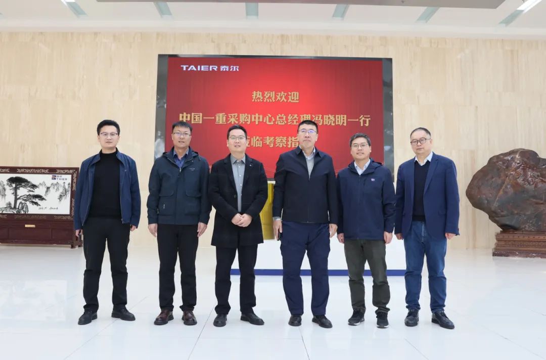 12月1日,中国一重采购中心总经理冯晓明、采购中心招标办副主任王强莅临泰尔考察指导。泰尔重工创始人邰正彪与一重客人进行了交流,并对他们的到来表示热烈的欢迎。泰尔常务副总经理吴世祥、副总经理葛燕飞、营销服务中心总经理盛扛扛、营销服务中心客户经理李伟等陪同一重客人参观泰尔,并进行了座谈交流。