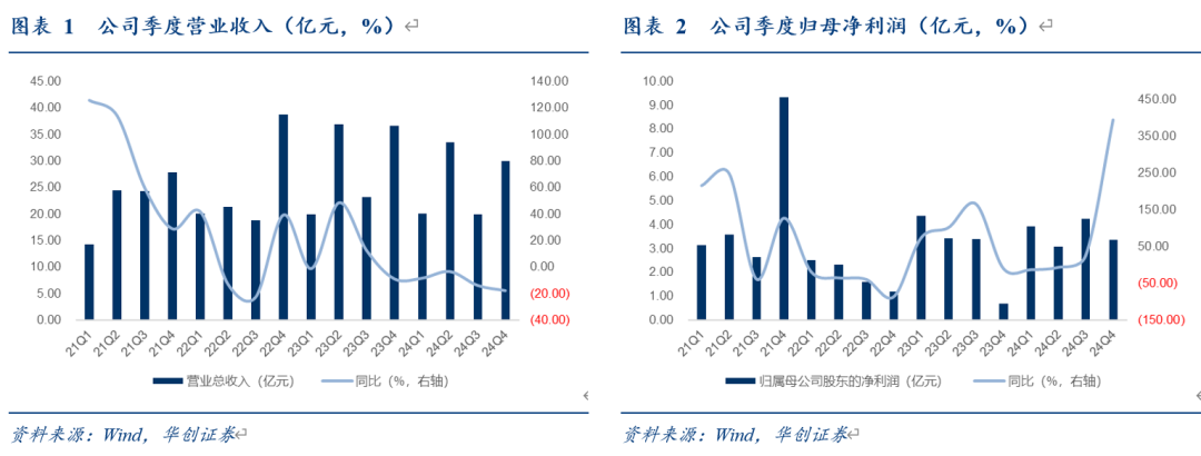 1)2024年度营业总收入103.62亿元,同比下降11.07%;归属于上市公司股东的净利润14.59亿元,同比增长22.91%;扣非净利润13.9亿元,同比增长27.22%,业绩超预期。2)分季度看,2024Q1、Q2、Q3、Q4,公司分别实现归母净利润3.91、3.07、4.25、3.36亿元,同比-13.2%、-6.74%、+25.1%、+395.67%;分别实现扣非归母净利润3.81、2.94、4.15、3亿元,同比-8.66%、+2.37%、+27.09%、+384.14%。