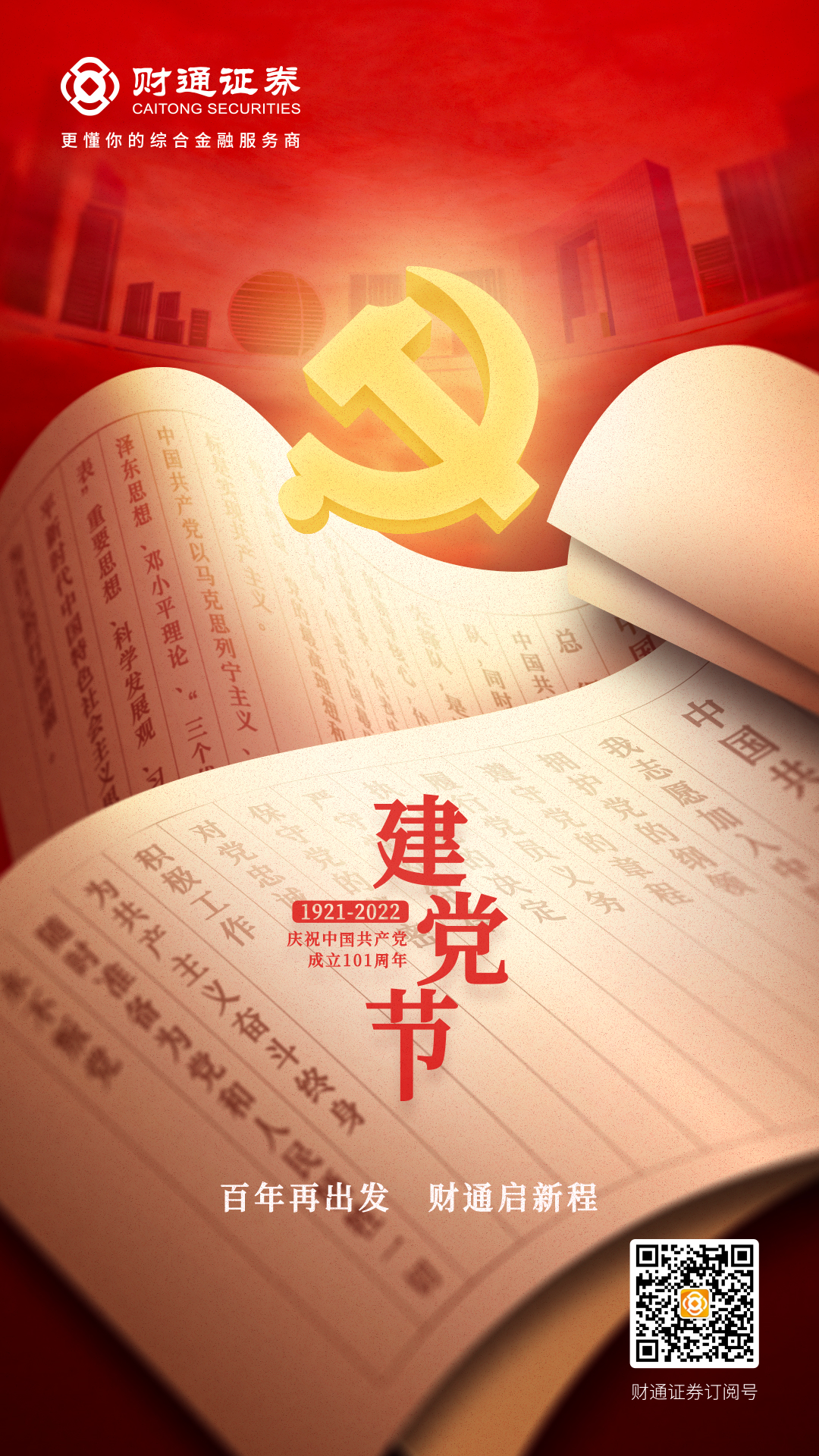 为庆祝中国共产党成立101周年,认真学习宣传贯彻省第十五次党代会精神,7月1日上午,财通证券隆重举行“百年再出发财通启新程”建党101周年庆祝活动。