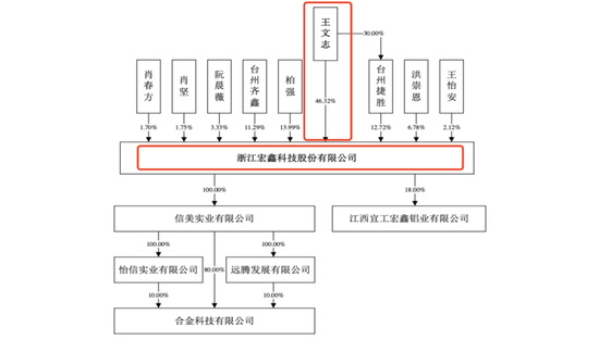 浙江宏鑫科技股份有限公司(以下简称“宏鑫科技”)主营业务为汽车锻造铝合金车轮的研发、设计、制造和销售。截至本招股说明书签署日,公司控股股东、实际控制人王文志先生直接持有公司5,141.17万股,通过台州捷胜间接持有公司 423.53万股,合计持有公司5,564.70万股,合计占本次发行前公司总股本的50.13%。