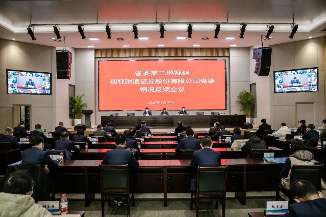 2023年1月3日,省委第三巡视组向财通证券股份有限公司党委反馈了巡视情况。省委第三巡视组组长孙良根代表省委巡视组分别向财通证券股份有限公司党委书记章启诚和财通证券股份有限公司党委领导班子反馈了巡视情况,省委巡视工作领导小组办公室副主任俞和良向章启诚传达了省委书记专题会议和省委常委会会议精神,对抓好巡视整改工作提出明确要求。章启诚主持向领导班子反馈会议并就做好巡视整改工作讲话。