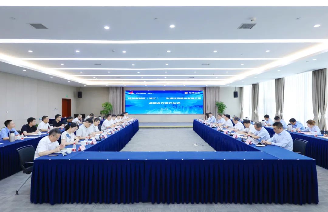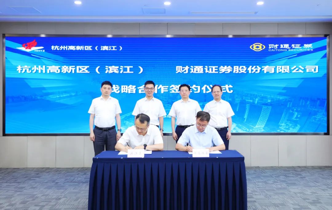 为贯彻落实浙江省委十五届三次全会精神,7月14日,财通证券与杭州高新区(滨江)人民政府签署战略合作协议,未来将进一步拓宽合作领域,探索更多政企联动新模式,携手实现互利共赢。高新区(滨江)区委书记章登峰,财通证券党委书记、董事长章启诚致辞。高新区(滨江)区委副书记、区长郑迪,区委常委、常务副区长陈宇,区管委会副主任、副区长佘坚,区管委会党工委委员、区委常委王孟辉;财通证券总经理、党委副书记黄伟建,党委委员、副总经理夏理芬,总经理助理、财通资本董事长申建新,董事会秘书官勇华等出席仪式。