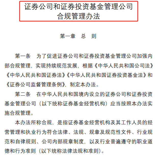 《证券公司和证券投资基金管理公司合规管理办法》规定:证券基金经营机构董事会决定本公司的合规管理目标,对合规管理的有效性承担责任;证券基金经营机构的高级管理人员负责落实合规管理目标,对合规运营承担责任;合规负责人对本公司及其工作人员的经营管理和执业行为的合规性进行审查、监督和检查。