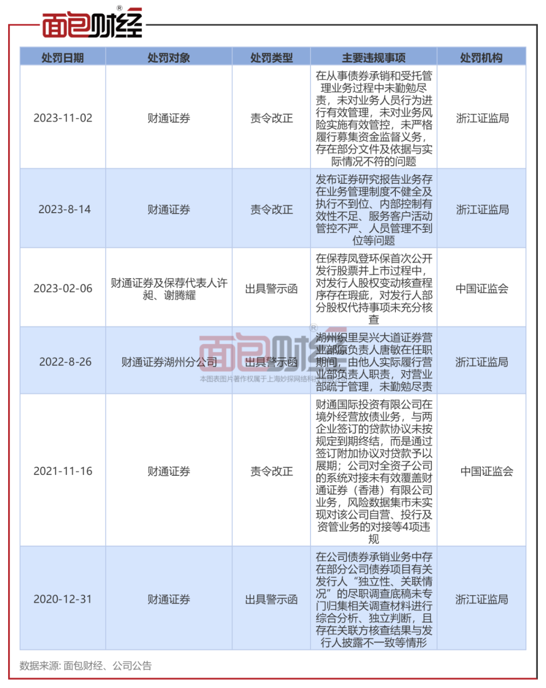 公开信息显示,据不完全统计,2020年以来,财通证券及其下属机构已被监管部门开出6张罚单。