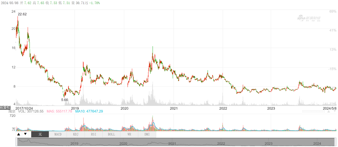 想当年,财通证券的发行价为11.38元/股,敲钟后股价震荡上行,一度达到22.62元/股。而在今日(2024年5月8日)收盘,财通证券股价仅为7.53元/股。目前的市净率为1.01,在43家上市券商中排名第30位,有着“破净”风险。