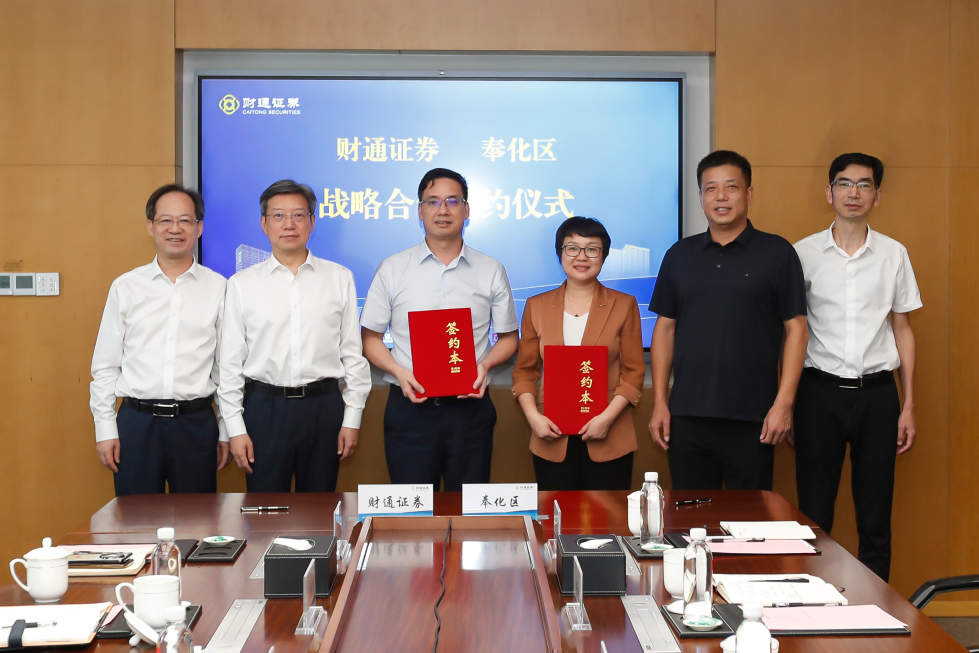 8月19日下午,财通证券与宁波市奉化区政府签署战略合作协议,双方将全面深化合作,开创金融与产业融合发展的新局面,为奉化区的产业升级和经济增长提供动力。财通证券党委书记、董事长章启诚,总经理、党委副书记黄伟建与奉化区委书记胡永光座谈交流并见证签约;财通证券党委委员、监事会主席叶笃银,奉化区副区长邵萍萍,财通证券董事会秘书兼财通资本董事长官勇华等出席签约仪式。