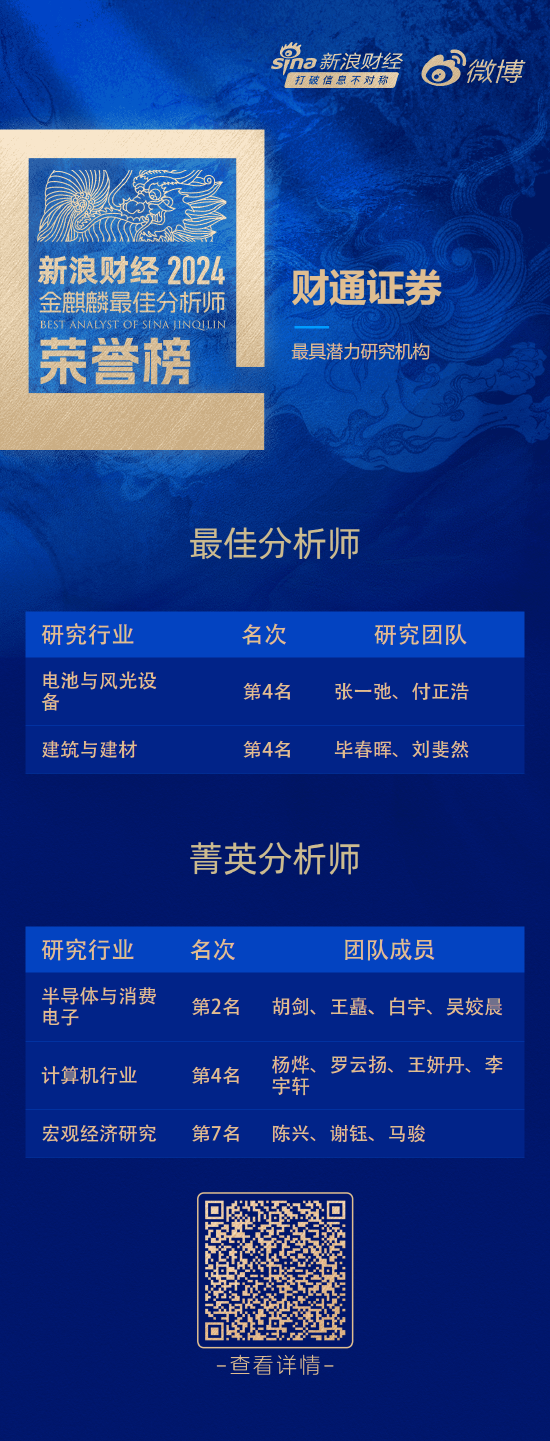最佳分析师荣誉榜,财通证券荣获2个领域研究大奖;菁英分析师荣誉榜,财通证券荣获3个领域研究大奖。名单如下: