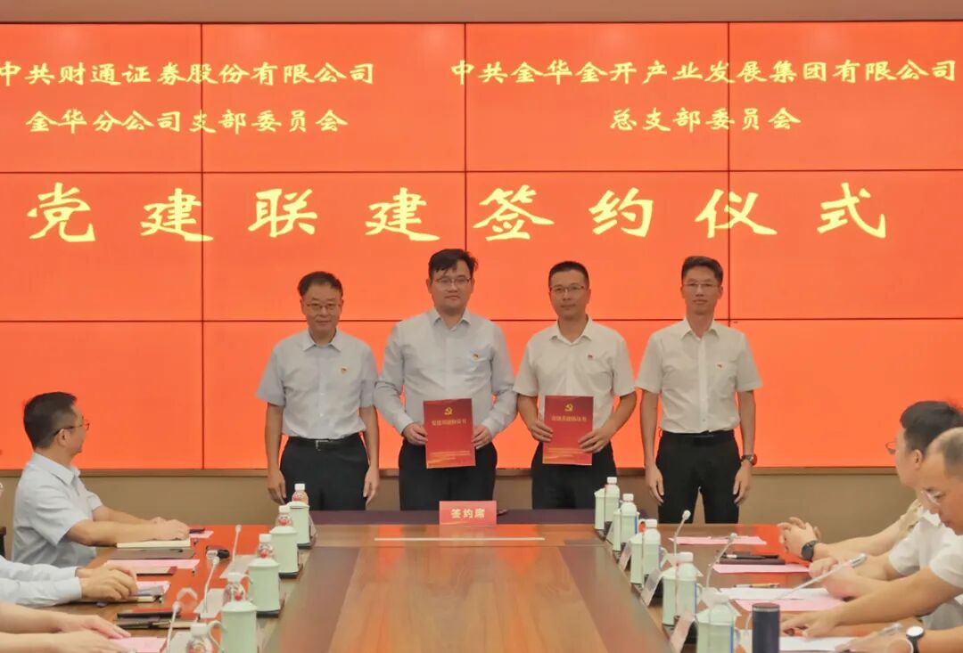 仪式上,中共财通证券股份有限公司金华分公司支部委员会与中共金华金开产业发展集团有限公司总支部委员会签订《党建结对共建协议书》。