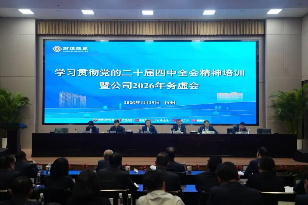 1月29-30日,财通证券召开学习贯彻党的二十届四中全会精神培训暨2026年务虚会。会议深入学习贯彻党的二十届四中全会、中央经济工作会议及省委十五届八次全会精神,系统总结了“十四五”时期发展经验,研究谋划“十五五”时期高质量跨越式发展路径,进一步凝聚起以“14510”战略体系为核心、以“四维制宜”为方法论的发展共识。财通证券领导班子成员、高管、总部各部门正副职及其他中层管理人员,子公司、重要参股公司领导班子成员等现场参加会议。