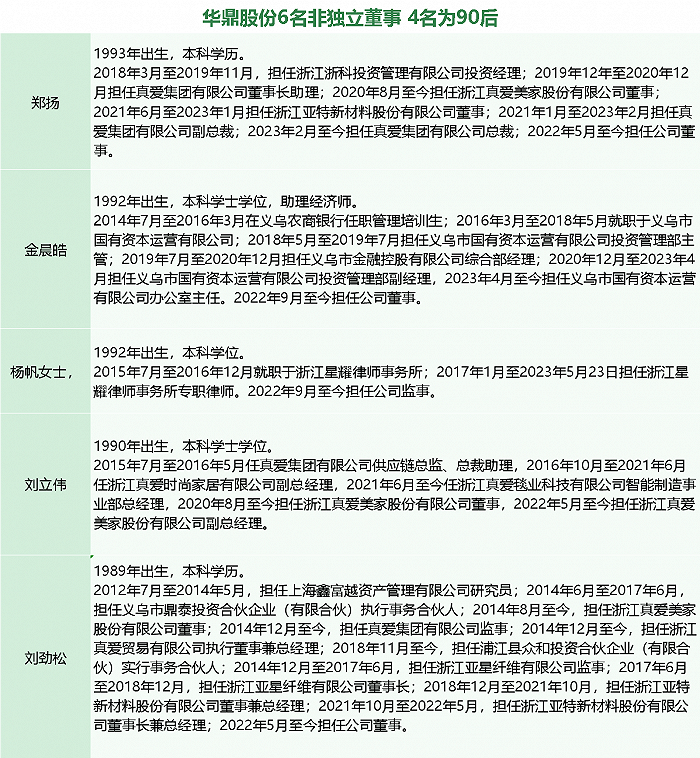 华鼎股份(601113.SH)提名的6名非独立董事中,4名名均为90后,还有一名为89后。
